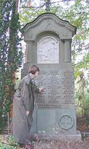 Sonja Freudenreich mit der abschließenden Kontrolle am Gefallenendenkmal in Altheim, 2003