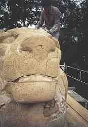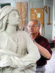 Stefan Freudenreich bei der Restaurierung der Madonna aus Oberdischingen 2000/2001