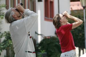 Der kritische Blick auf den trutzigen Turm der Kirche macht deutlich: