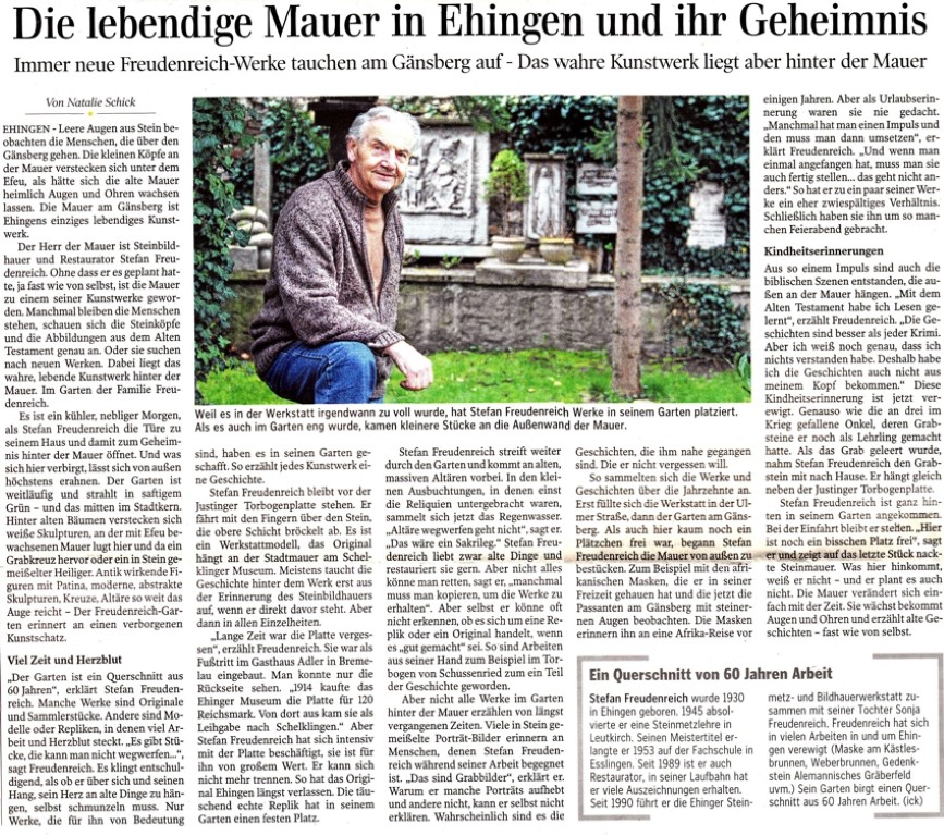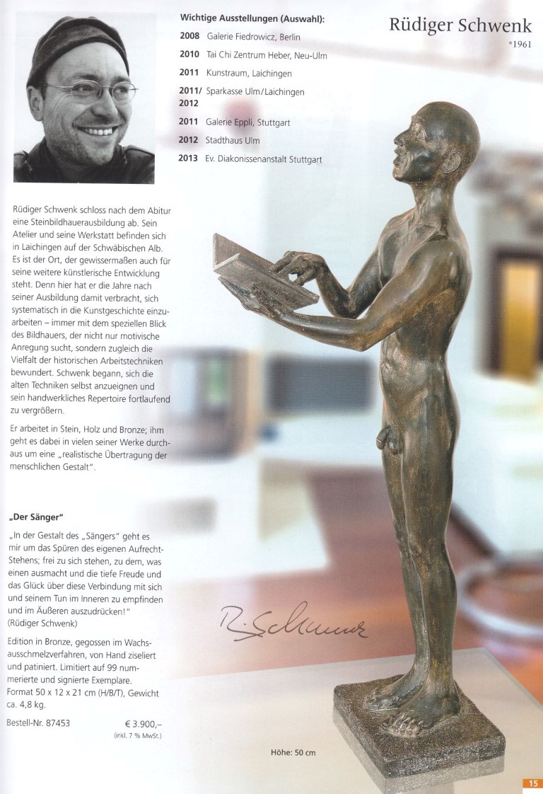 November 2013 BILDHAUER Viele Jahre hat Rüdiger Schwenk bei uns gearbeitet und ist auch heute immer wieder in unserer Werkstatt tätig. Schön, dass er mit seiner Bildhauerkunst Erfolg hat. |