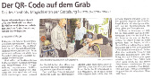 August 2013 Moderne Zeiten: ein QR-Code für weitere Informationen aufs Grab?! Wir werden diese Möglichkeit bei unserem Schausonntag am „Tag des Friedhofs“ vorstellen und sind gespannt auf die Reaktion. |