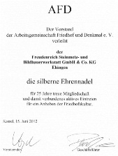 | Juni 2012 - Ehrenurkunde für Mitgliedschaft in der AFD |