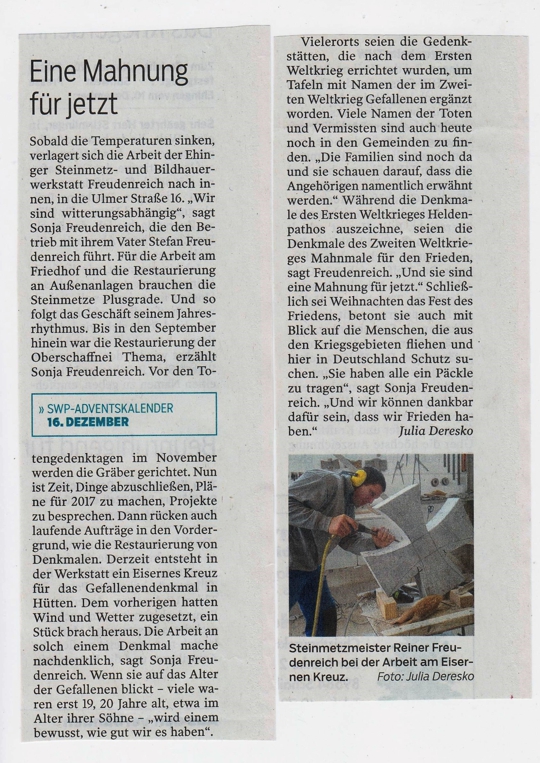 Ehinger Tagblatt 16.12.2016 Südwestpresse-Adventskalender