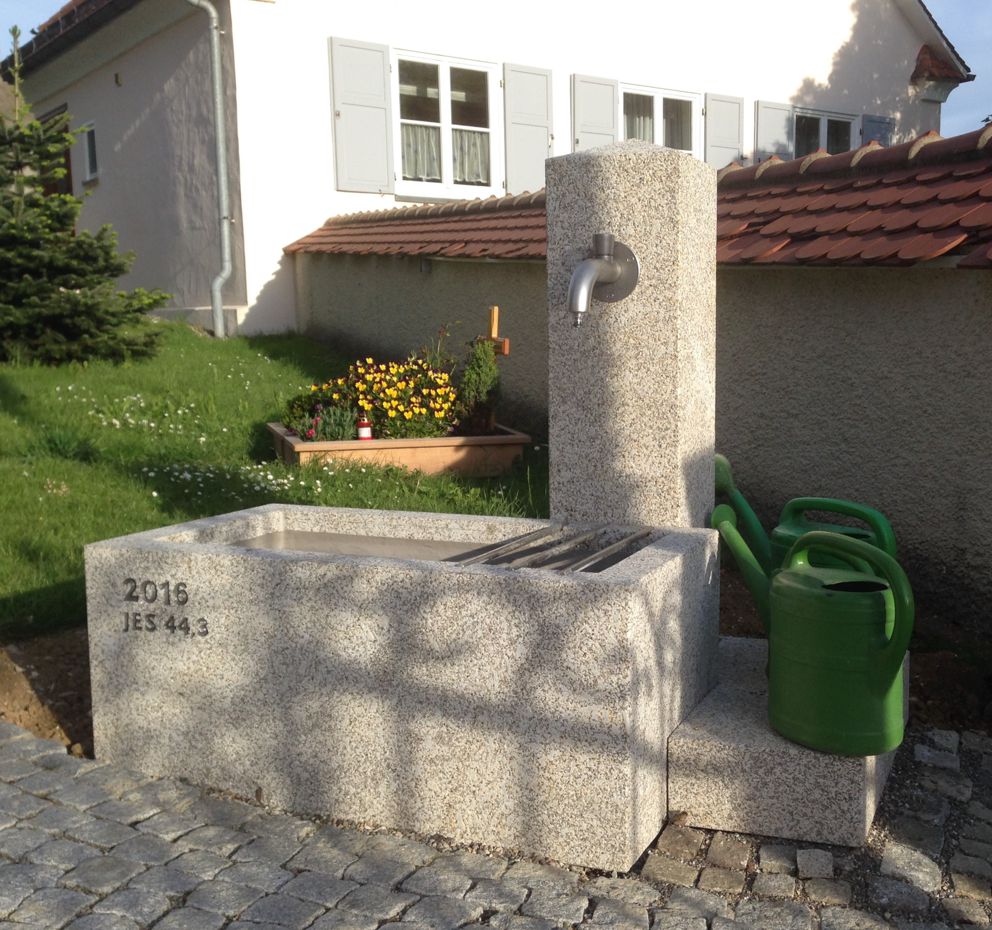 Pünktlich zur Sommeranpflanzung wurde der von uns für den Friedhof in Nasgenstadt entworfene Brunnen fertiggestellt.