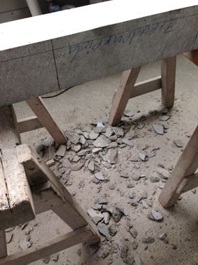 Ruhige, rhythmische Schläge tönen aus der Werkstatt, Steinbrocken liegen auf dem Boden, Kalksteinsplitter knirschen unter den Sohlen – so muss das sein in einer Steinmetzwerkstatt.