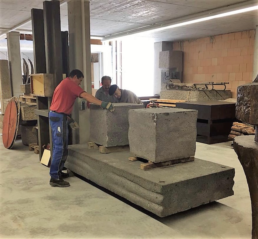 Steinmetzarbeiten hoch über dem Schmiechtal am Denkmal für die Gefallenen des 1. Weltkrieges von Hütten