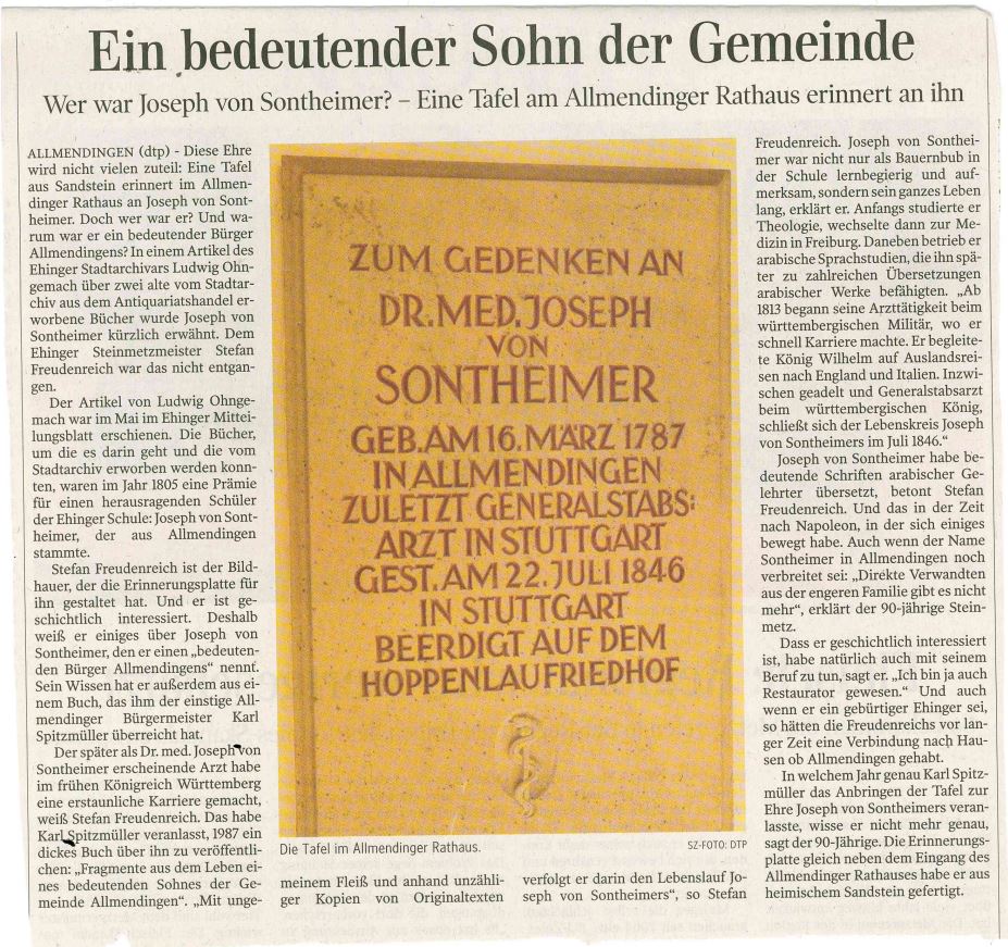 Eine Steintafel erzählt Geschichte der Ehinger Vorstadt