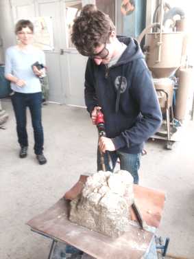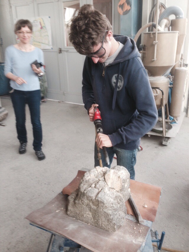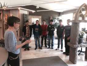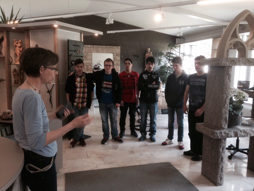 und informieren sich über die Tätigkeiten, die in einer Steinmetzwerkstatt anfallen.