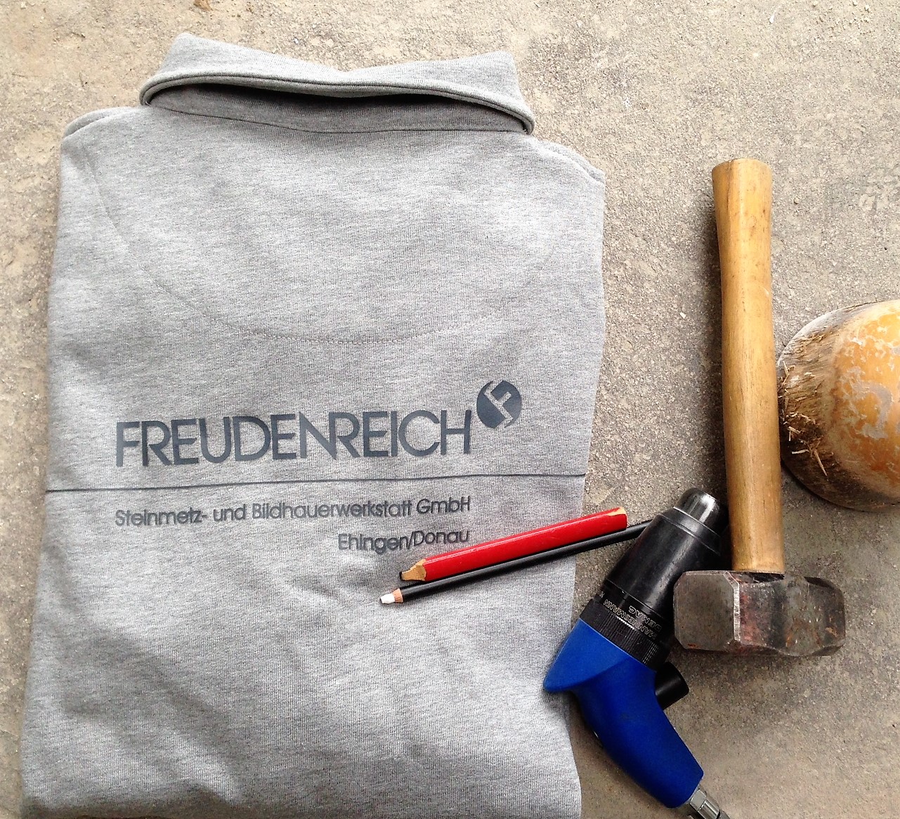 Das Logo der Firma Freudenreich steht ebenfalls in dieser Tradition. Das Zeichen des Firmengründers ist Entwurfsgrundlage für das „Gütesiegel“, das hinter dem Namenszug steht.